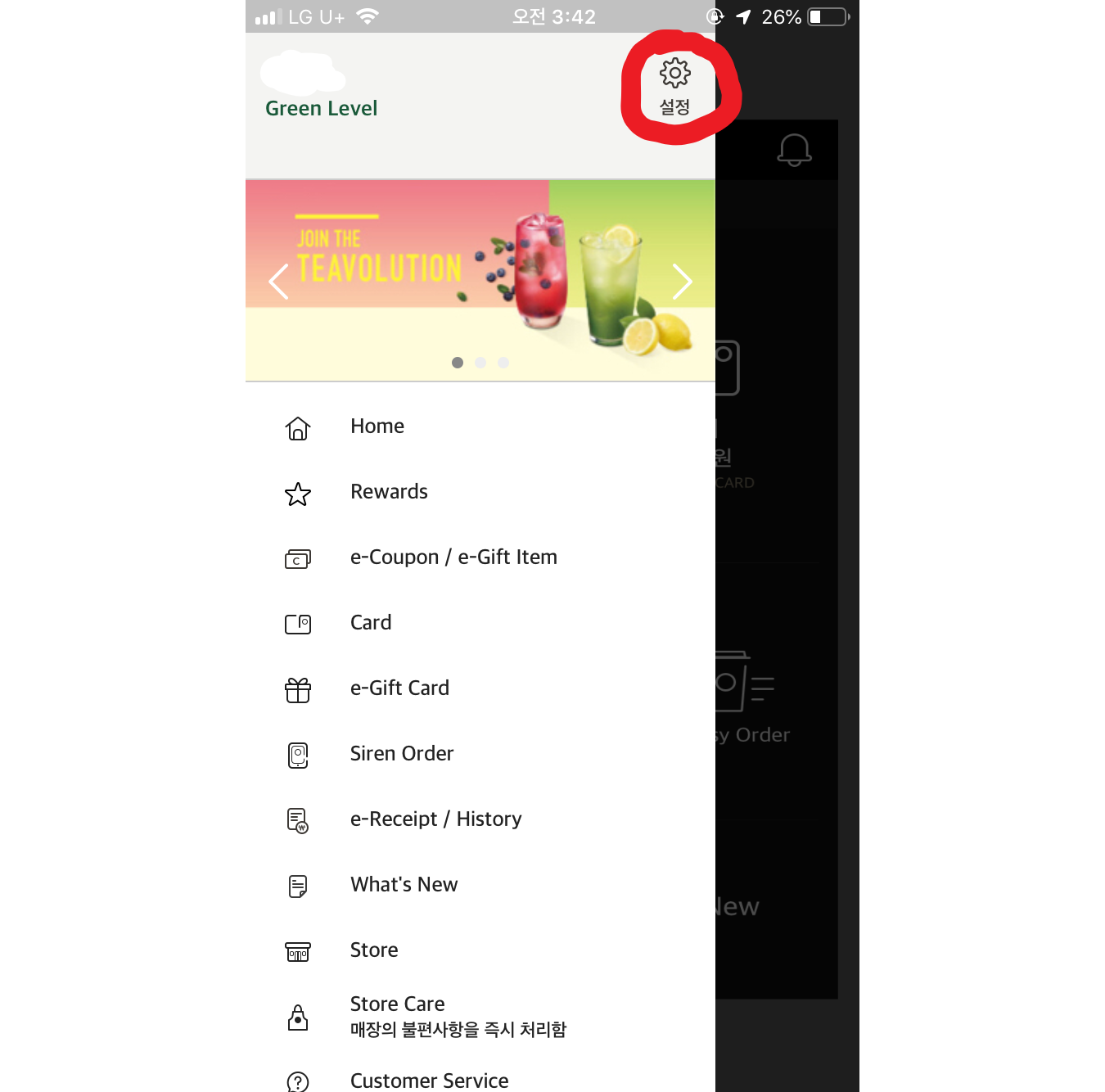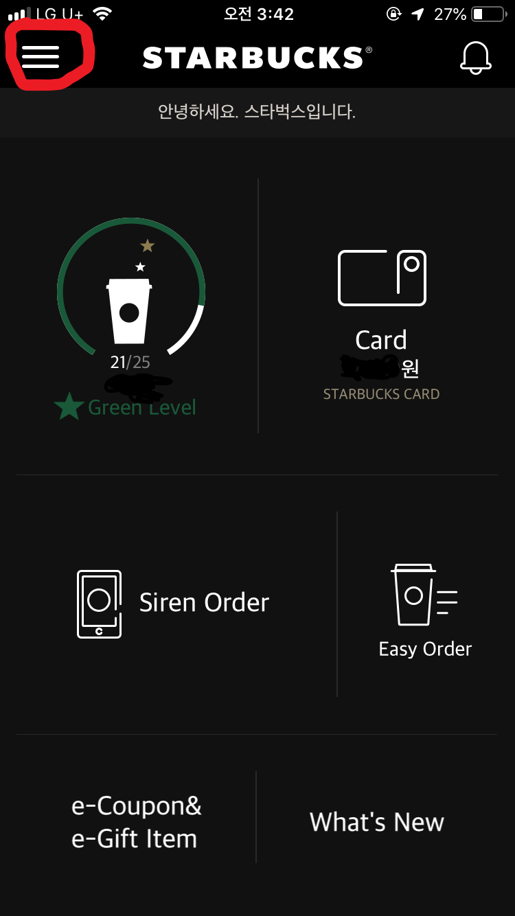 스타벅스 어플에 첫 화면에 이렇게 나옵니다!